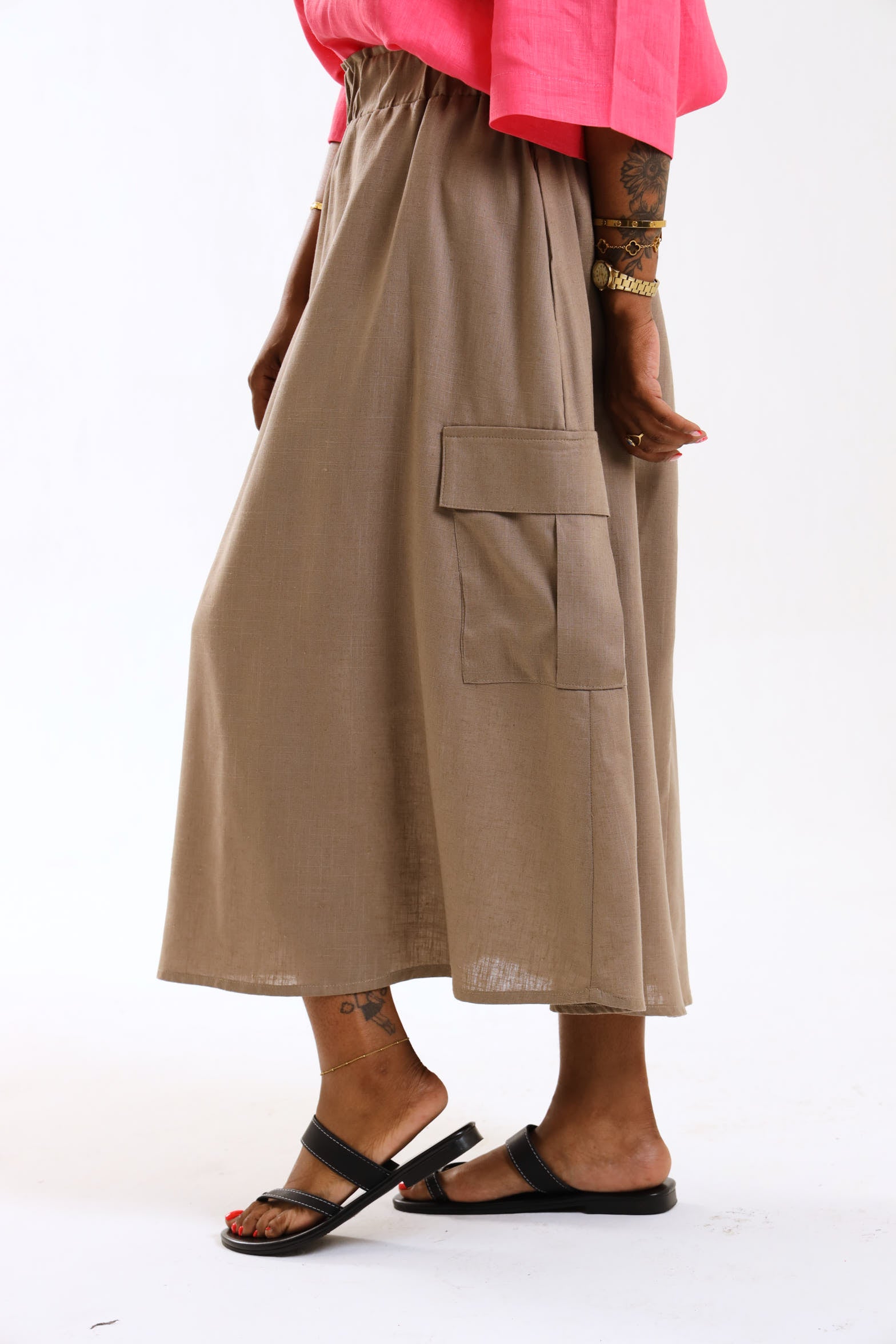 Our Linen Cargo Skirt is designed for comfort and versatility, with an...