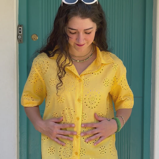 Your warm-weather go-to ☀🌿 The Classic Shirt, summer edition, is crafted in soft embroidered cotton for all-day comfort. With short sleeves, a relaxed loose fit, and easy side slits, it moves beautifully with you. A slightly longer back adds a flattering drape, while delicate border details at the hem ✨ make it just that little bit extra. Style it tucked, untucked, or layered — the ultimate piece for effortless summer days 🌸🍃