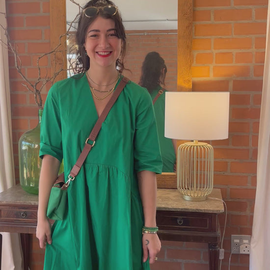 Featuring a flattering waterfall waist, 3/4 sleeves, a V-neck, and convenient pockets, this maxi-dress is crafted from soft, durable poplin for long-lasting comfort. Perfect for any occasion, its airy silhouette keeps you looking stylish with ease 💙