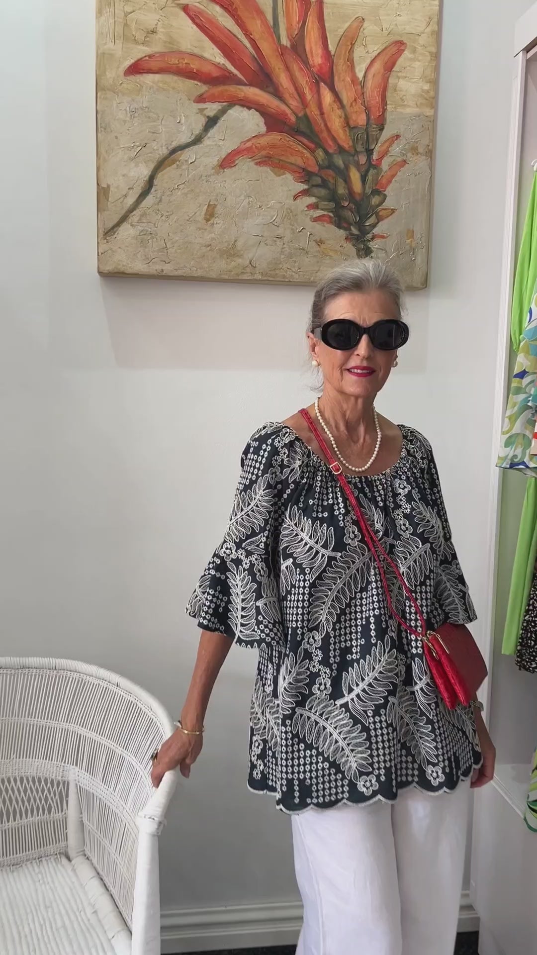 A beautifully feminine, flowing shirt crafted in embroidered cotton🌸 designed with ¾ bell sleeves and a soft elasticated neckline that can be worn on or off the shoulder ✨. Its versatile cut pairs effortlessly with our Classic Pants to create a chic matching set you’ll reach for again and again.