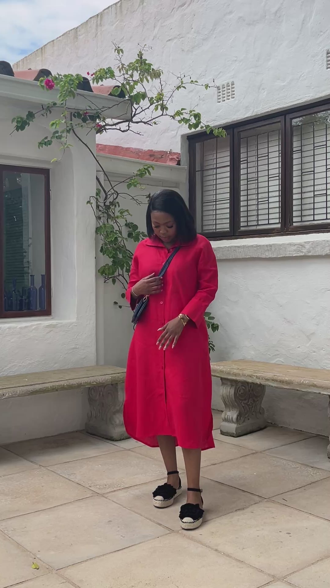 Crafted in a flattering A-line silhouette, it features 3/4 sleeves, a button closure, two pockets, and a slightly longer hemline at the back for effortless style and flair 🌸.