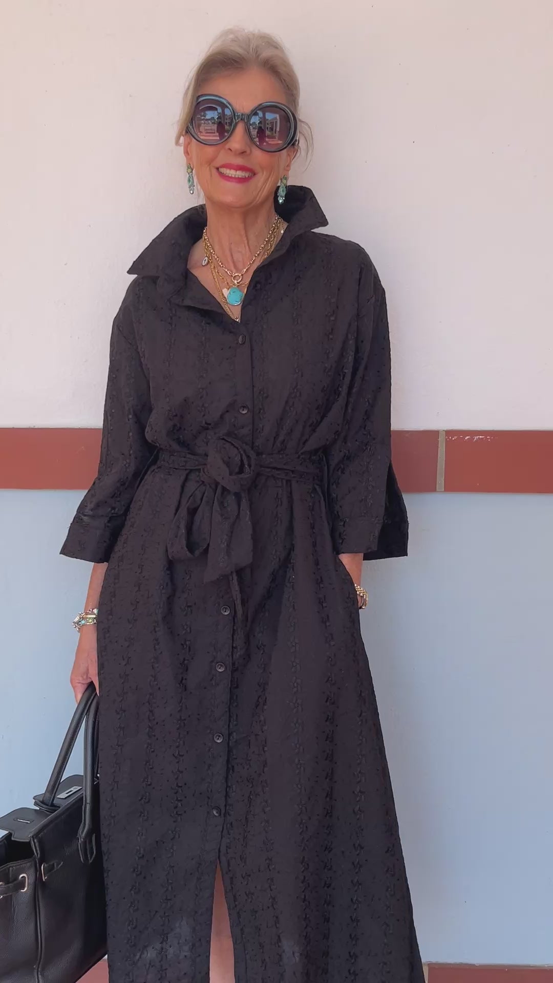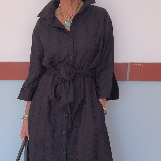 Indulge in timeless luxury ✨ Our classic A-line Shirt-Waister features an elegant waist-tie, 3/4 sleeves, and handy pockets 🌿 Effortlessly chic and versatile, this embroidered cotton dress is a must-have for your wardrobe, perfect for sailing into Spring in style!