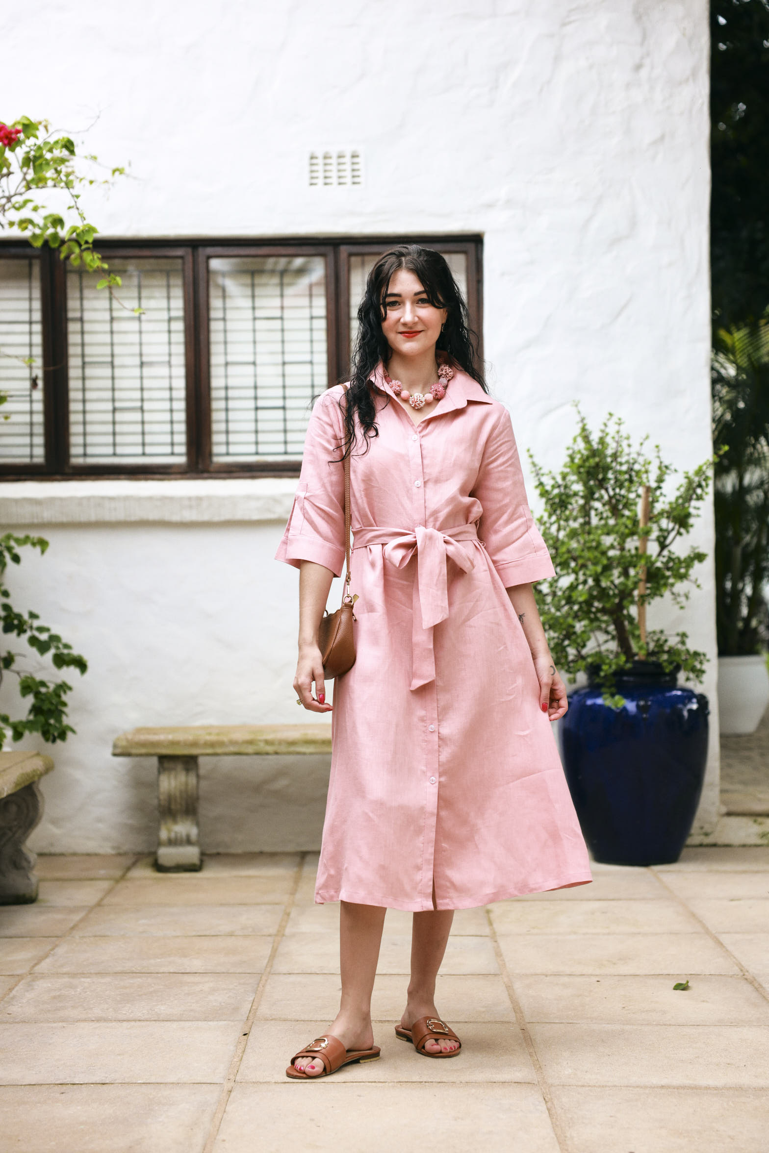 Indulge in timeless luxury ✨ Our classic A-line Shirt-Waister features an elegant waist-tie, 3/4 sleeves, and handy pockets 🌿 Effortlessly chic and versatile, this 100% linen dress is a must-have for your wardrobe, perfect for sailing into Spring in style!