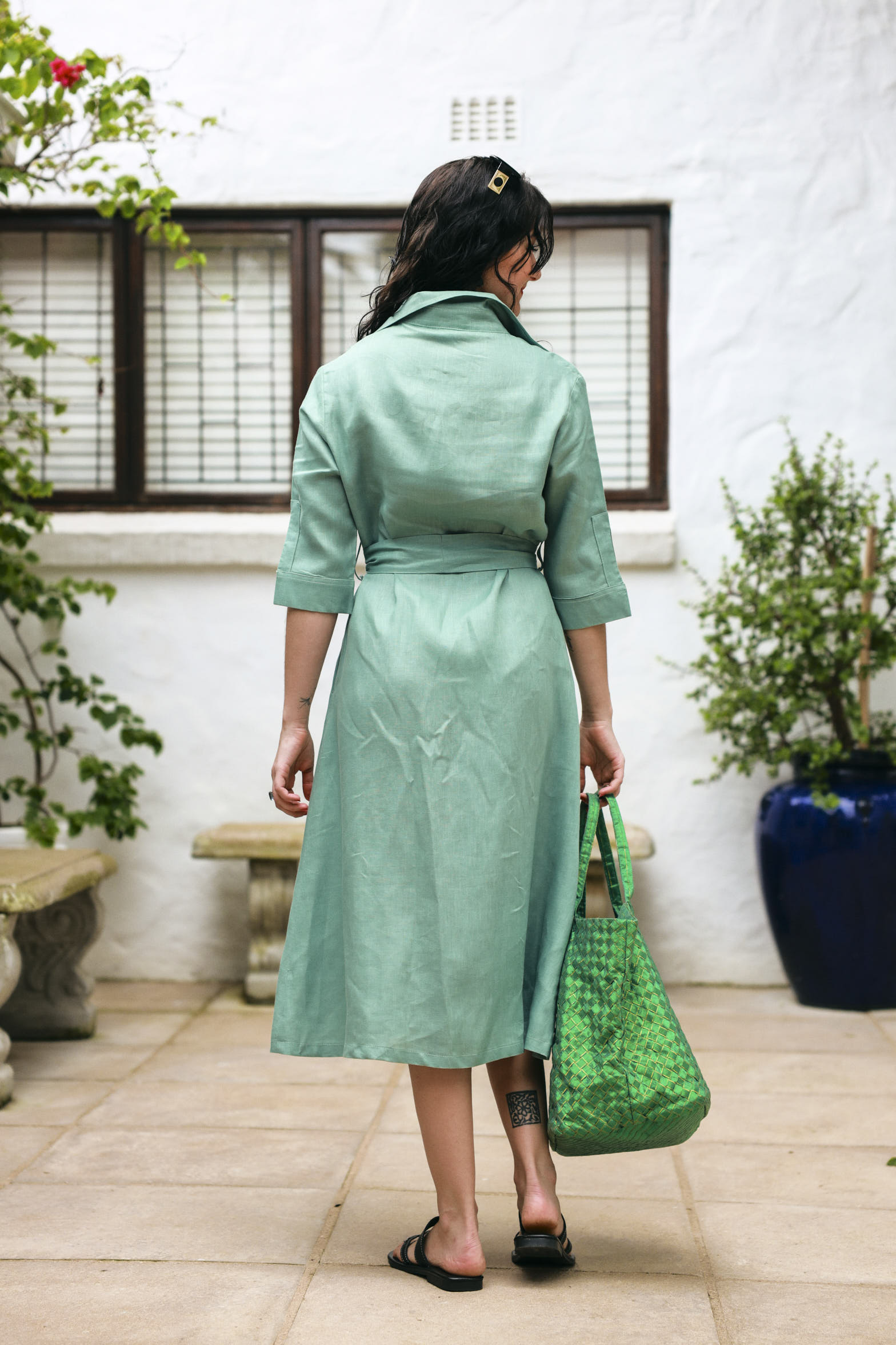 Indulge in timeless luxury ✨ Our classic A-line Shirt-Waister features an elegant waist-tie, 3/4 sleeves, and handy pockets 🌿 Effortlessly chic and versatile, this 100% linen dress is a must-have for your wardrobe, perfect for sailing into Spring in style!