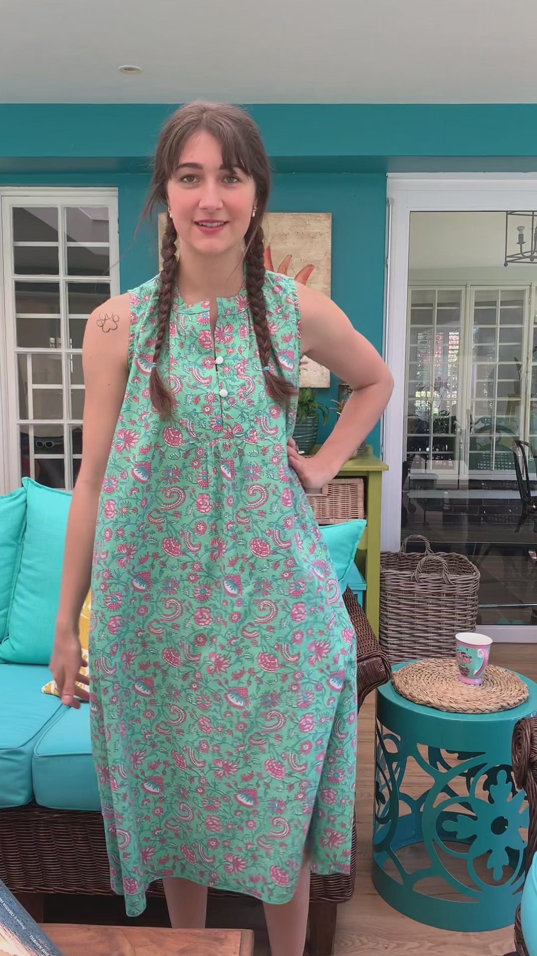 This sleeveless summer style, crafted from pure Indian cotton, is soft, elegant, and made for indulgent evenings of comfort and relaxation 🌿.